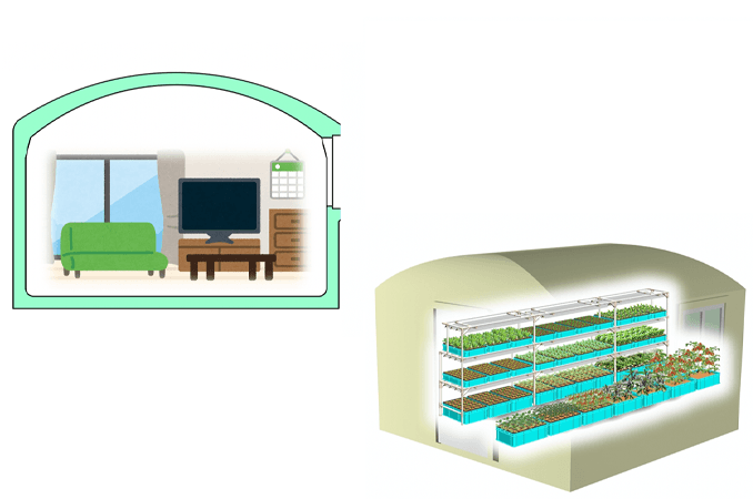 The approx. 13㎡ space can used for a variety of purposes, such as residence, medical facilities, green house, and so on.