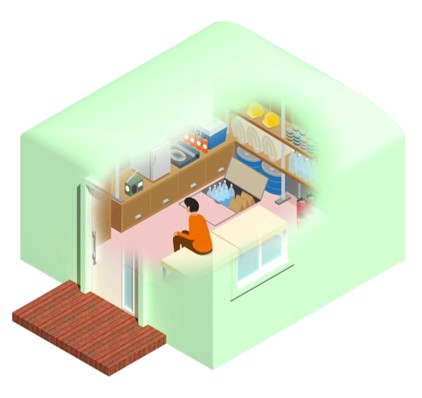 The well-sealed space enables us to easily control the air condition.Extreme energy saving can be done even in both very hot and very cold climates owing to the super-insulating function and efficiency of air control.