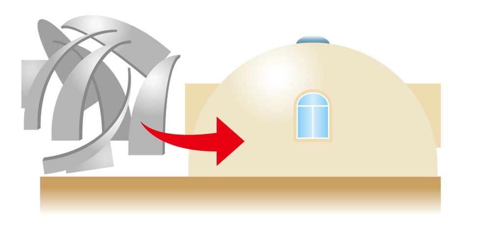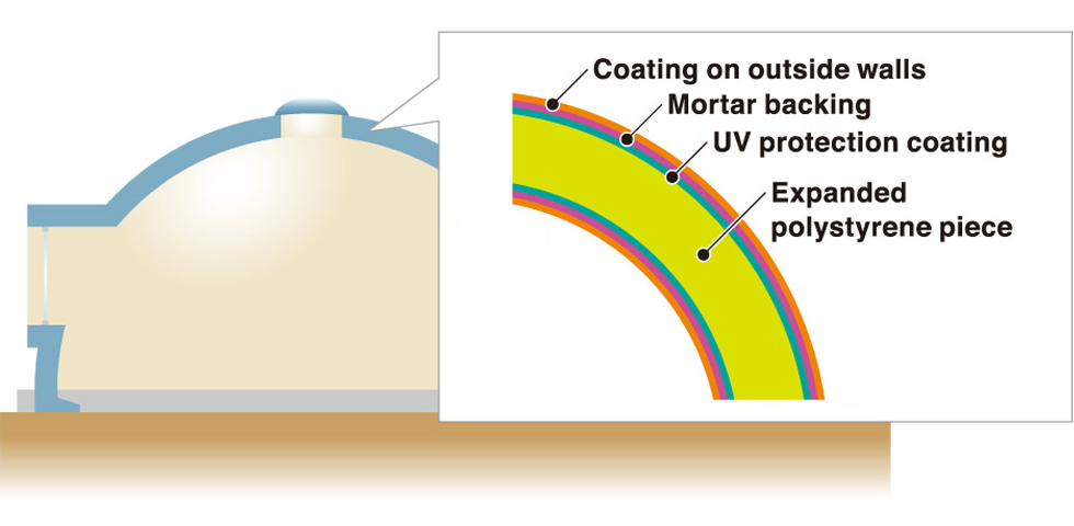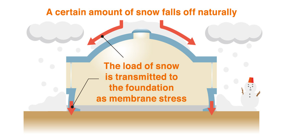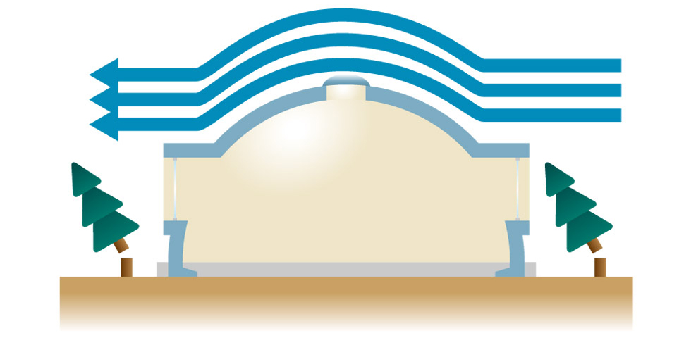 The dome’s streamlined design shields it from wind, while its securely buried legs can withstand severe typhoons due to their robust foundation and streamlined design. The dome’s streamlined shape and buried legs ensure its durability.